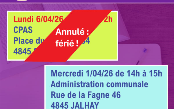 ATTENTION ! Permanence juridique uniquement à Jalhay ce mois-ci !